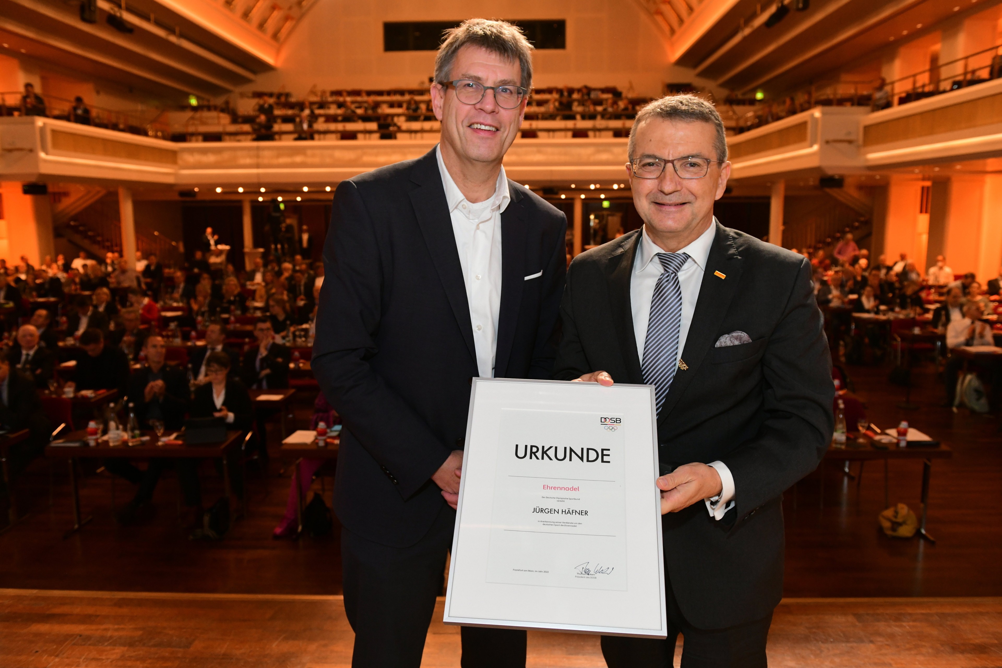 Ehrennadel des DOSB an Lotto-Geschäftsführer Jürgen Häfner verliehen