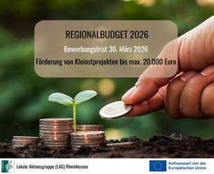 Erstmalig in der LEADER-Region Rheinhessen gibt es 2026 die Fördermöglichkeit von Kleinstprojekten im Förderaufruf „Regionalbudget“. Gesucht sind innovative Projekte zur Gestaltung der ländlichen Region Rheinhessen, die Gemeinschaft stärken, zum Umweltschutz beitragen, Tourismus und Wein erlebbar machen und den Standort Rheinhessen fit für die Zukunft aufstellen. Insgesamt stehen 66.666,67 Euro. Die Mittel stehen unter Vorbehalt der Mittelbereitstellung.