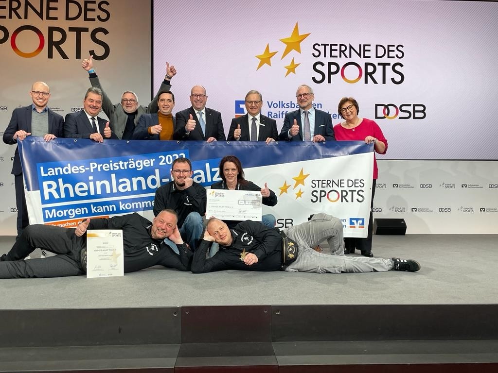 23. Januar 2023Bemerkenswerter Erfolg für die „VIKINNGS Muay Thai“: Der Verein hat nach Auszeichnungen auf lokaler (Bronzener Stern des Sports) und regionaler Ebene (Silberner Stern des Sports) für sein besonderes gesellschaftliches Engagement nun auf Bundesebene den 4. Platz bei den „Sternen des Sports“ in Gold 2022 belegt. Bundespräsident Frank-Walter Steinmeier ehrte gemeinsam mit dem Präsidenten des Deutschen Olympischen Sportbundes (DOSB), Thomas Weikert, und der Präsidentin des Bundesverbandes der Deutschen Volksbanken und Raiffeisenbanken (BVR), Marija Kolak, am Montag im Rahmen der Preisverleihung in der DZ BANK in Berlin. Eingereicht wurde das Projekt über die Volksbank Alzey-Worms innerhalb des Sportbundes Rheinhessen.