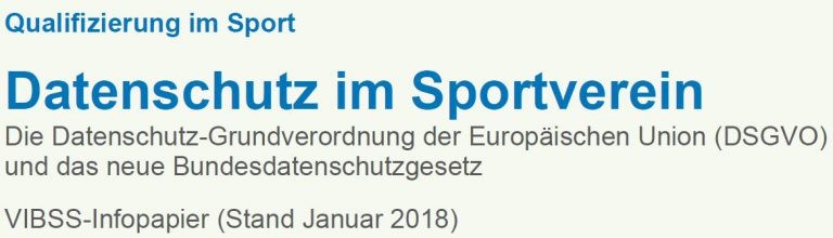 Eines der zahlreichen Infopapiere im Bereich von VIBSS – Online befasst sich mit dem Datenschutz im Sportverein ab dem 25.05.2018.