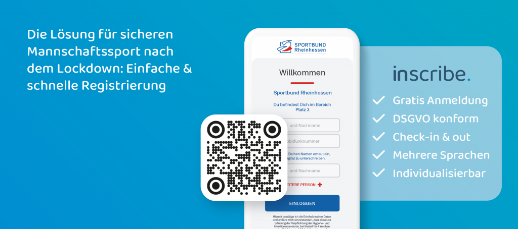 Der Ablauf ist ganz einfach: Jeder Verein generiert die notwendigen QR-Codes für seine Veranstaltungen, welche die Teilnehmer*innen beim Eintritt scannen. Die Teilnehmer*innen benötigen dazu lediglich ein Smartphone, denn Inscribe ist als mobile Weblösung mit jedem Betriebssystem kompatibel, ein Download vor Ort ist nicht nötig. Sie müssen in der App nur einmalig ihre Kontaktdaten eingeben und können sich dann bei jedem Training oder Wettkampf in Sekundenschnelle kontaktlos registrieren. Beim Verlassen der Örtlichkeit können die Teilnehmer*innen sich wieder ausloggen, oder nach einem definierten Zeitraum ausgeloggt werden.