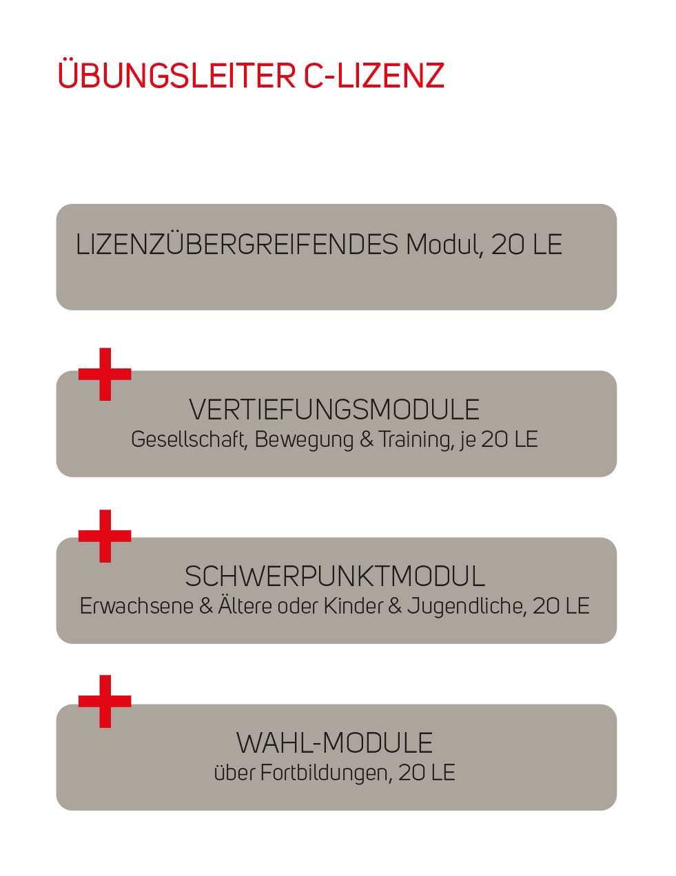 Die Teilnehmer*innen sollen befähigt werden, qualifizierte Übungsstunden im sportartübergreifenden Breitensport für verschiedene Altersstufen durchzuführen. Inhaltlich wird unter anderem auf die Planung von Übungsstunden in Theorie und Praxis, Sportpädagogik, Sportmedizin und Sportversicherung eingegangen.